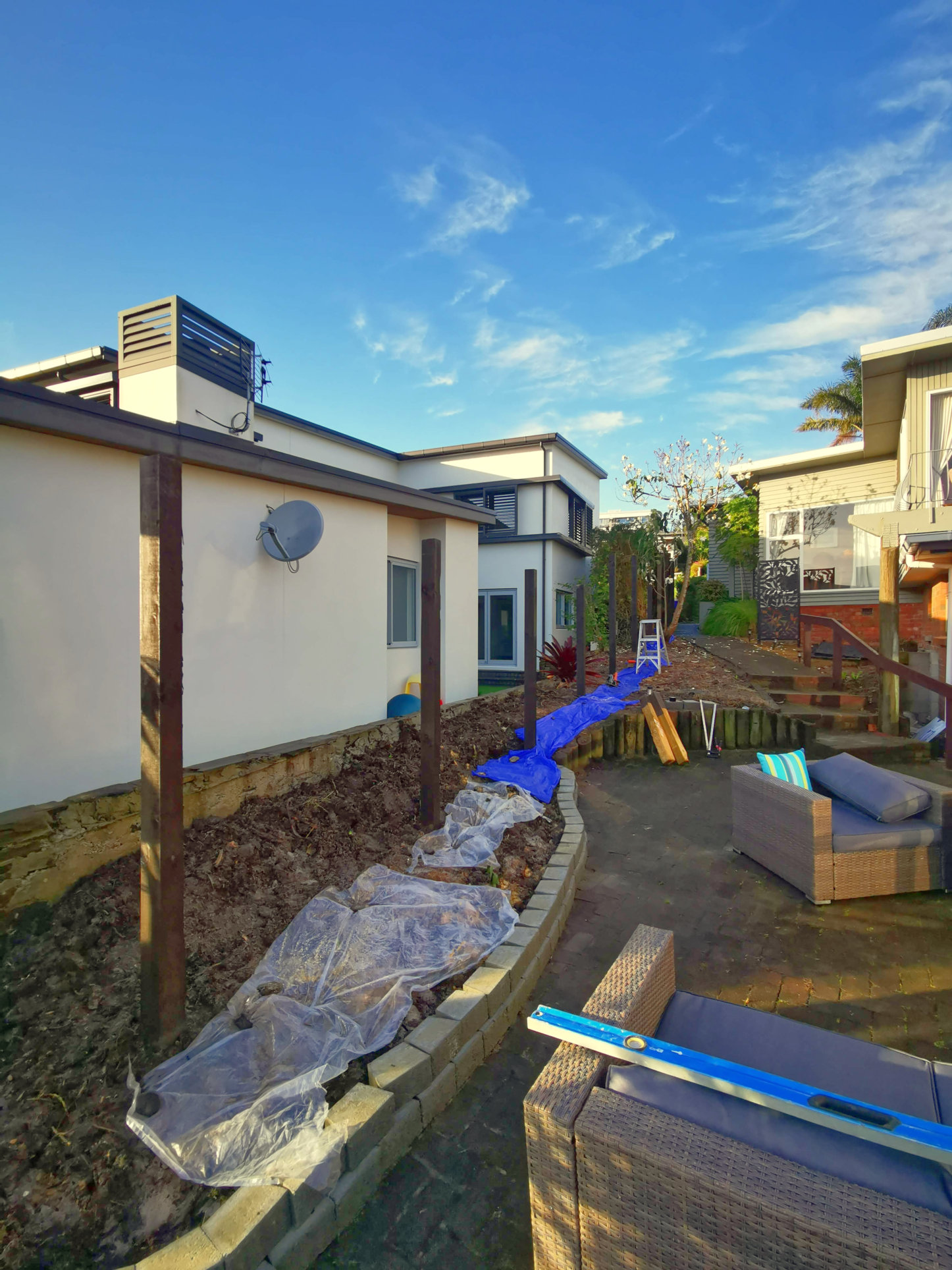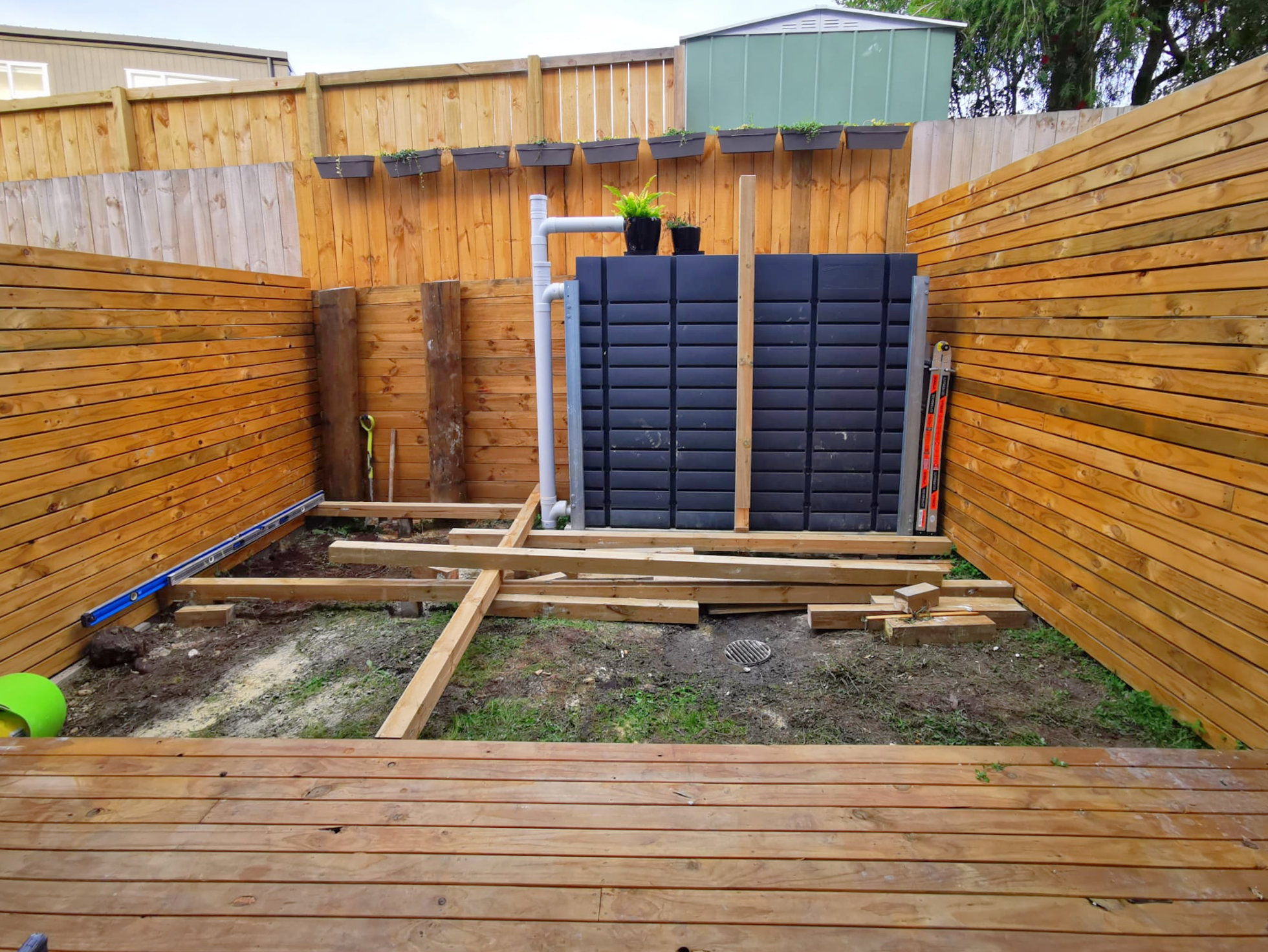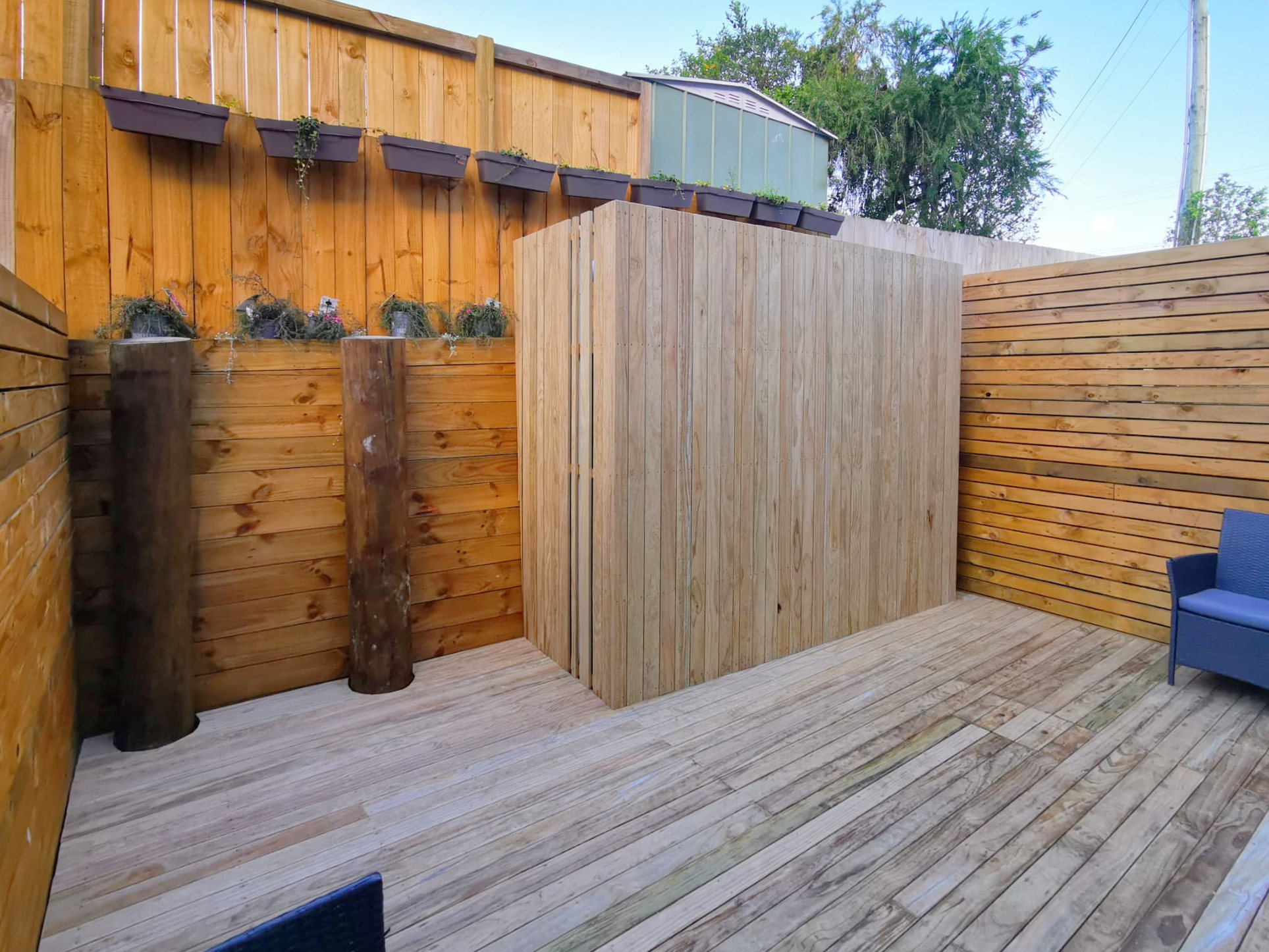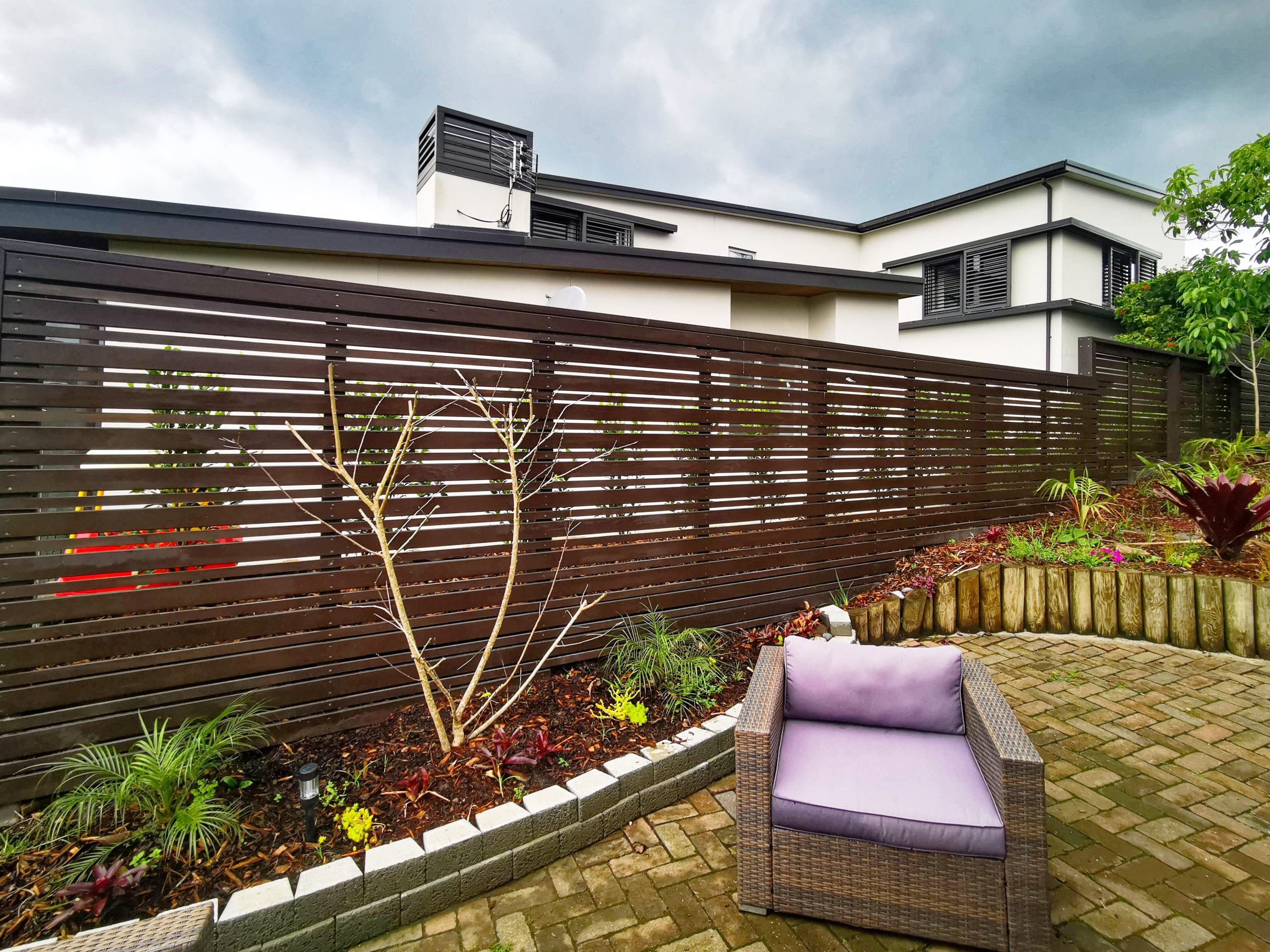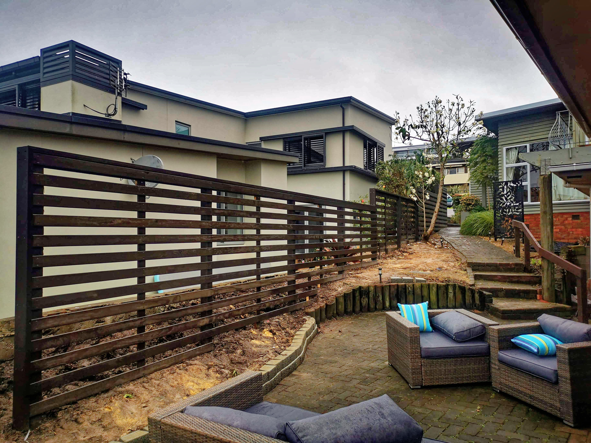 Fencing using timber palings and timber panels (narrow)